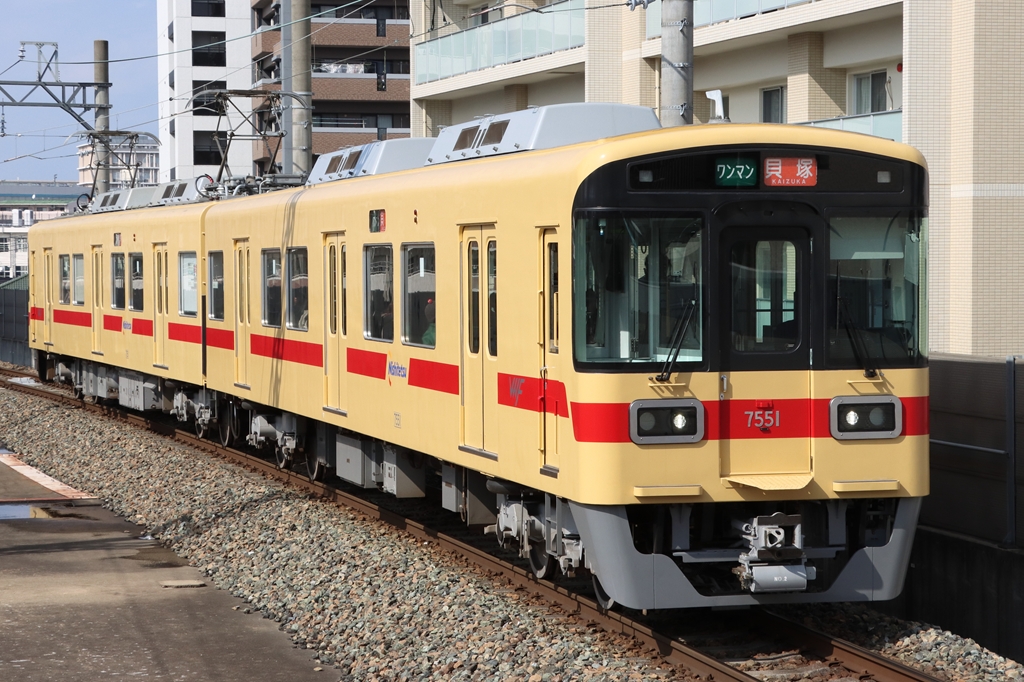 7050形は西日本鉄道が2003年に製造した電車である。2両編成9本が投入された。 2026年から貝塚線に転用されている。